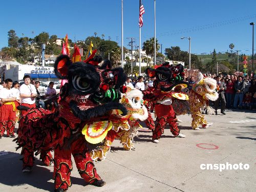 当地时间2月7日,大年初一清早,洛杉矶中国城越华会侨团举行新年团拜,并以舞狮舞龙,燃放爆竹拉开新春第一天序幕,吸引上千来自越南的华人华侨共襄盛举。中新社发 卢威 摄