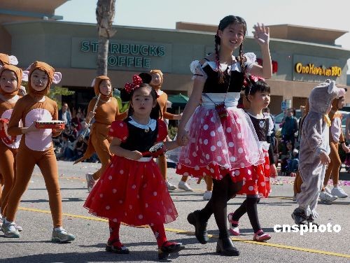 美国洛杉矶东部阿市圣市联合举办迎春花车游行