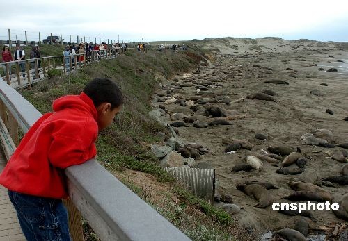 当地时间二月十八日,美国民众成群结队前往加州巴加海滨的象海豹保护地,观看象海豹一年一度来此沙滩度过生仔哺乳期。生活在太平洋里的象海豹,曾在一百多年前受到人类毁灭性捕杀,仅剩下不足一百只。经过长时间繁殖,象海豹如今已形成总数为十六万只的壮观族群。中新社发 贾国荣 摄
