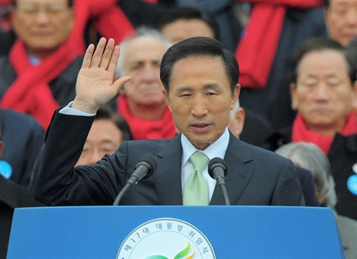 2月25日上午,李明博在首尔正式宣誓就任第17届韩国总统。李明博在就职典礼上发表了“团结一致共创未来发展之路”的演讲,向韩国民众和前来参加此次就职典礼的各国政要表示感谢。当天有数万人参加了李明博的就职典礼。