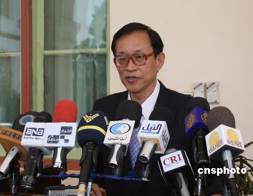当地时间2月27日下午,苏丹总统巴希尔在总统府会见中国政府达尔富尔问题特别代表刘贵今。刘贵今在会见后对记者说,为寻找达尔富尔问题持久的妥善解决方案,自己向苏丹总统说明了中国政府的立场。中新社发 李鹏 摄
