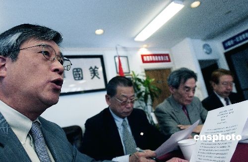 当地时间3月9日,旧金山中国统一促进会、北加州中国和平统一促进会和海外兴中会发表联合声明,坚决反对台湾当局“入联公投”。中新社发 陈钢 摄