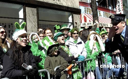 爱尔兰裔美国人以绿色装扮自己庆祝这一传统节日。