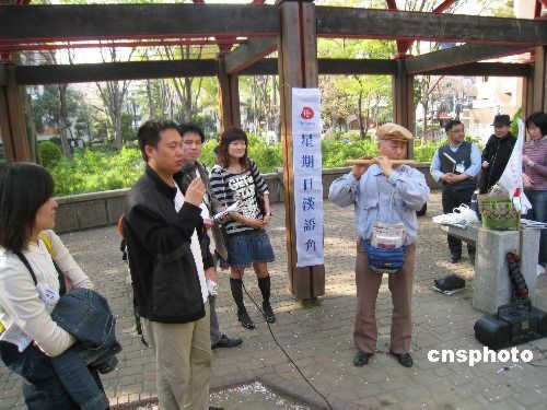 4月6日,日本侨报社创办的星期日汉语角在东京西池袋公园举行第34次交流活动。参加者用日中两国语言演唱了《北国之春》、《大海啊故乡》等中日名曲,赢得在场人员的阵阵掌声。中新社发 段跃中 摄
