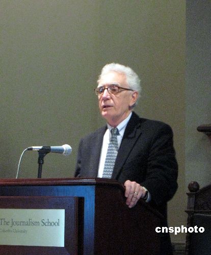 4月7日,美国第九十二届“普利策奖”评选结果在纽约揭晓。《华盛顿邮报》独揽14个新闻奖项中的6项大奖,成为本届“普利策”最大赢家。图为“普利策奖”秘书长西格·吉斯勒在哥伦比亚大学新闻学院公布获奖结果。中新社发 李静 摄