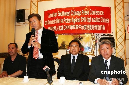 当地时间4月17日,美国洛杉矶举行了“西南华人抗议CNN辱华事件示威活动新闻发布会”。据悉,美南加州多个华人华侨社团组织呼吁美西南华人华侨走上街头,前往CNN洛杉矶分部,抗议CNN对中国的负面报道和主持人卡弗蒂的辱华言论,并要求其作出公开、正式的道歉。中新社发 金立 摄