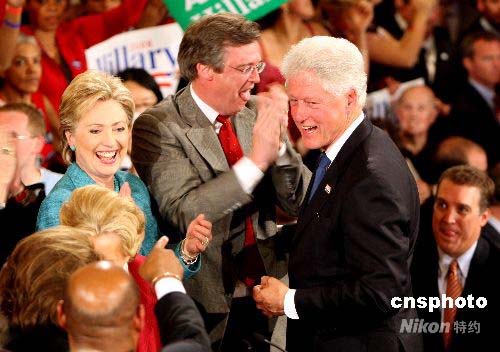 克林顿庆祝妻子希拉里赢得宾州初选胜利