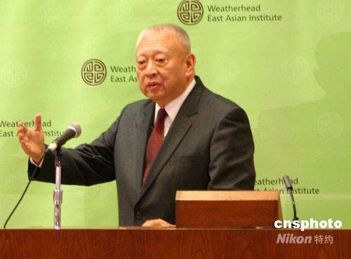 中国全国政协副主席董建华25日在纽约出席哥伦比亚大学“第四届中国问题座谈会”时指出,中美双方应立即行动,致力于塑造一个新的健康、稳定、合作的中美关系,这才是两国人民的共同利益所在。中新社发 李静 摄
