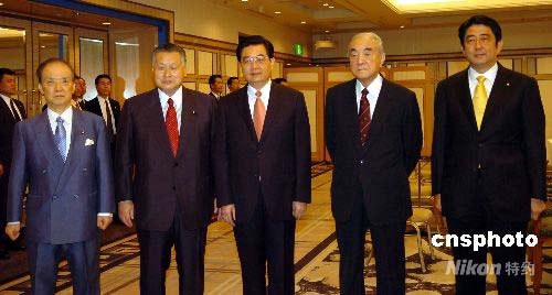 5月8日,正在日本进行国事访问的中国国家主席胡锦涛与中曾根康弘、森喜朗、海部俊树、安倍晋三等四位日本前首相共进早餐。胡锦涛高度评价各位先生在首相任内及任后为发展中日友好所作的积极努力。中新社发 朱沿华 摄