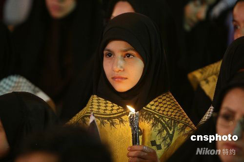 5月15日晚,伊朗民众聚集在首都德黑兰巴勒斯坦广场举行纪念巴勒斯坦第60个“灾难日”活动。以色列1948年5月14日宣布建国。次日,阿拉伯国家与以色列爆发第一次中东战争,大批巴勒斯坦民众为躲避战争而逃亡。巴勒斯坦人因而把5月15日命名为民族“灾难日”,今年是第60周年。中新社发 原丁 摄