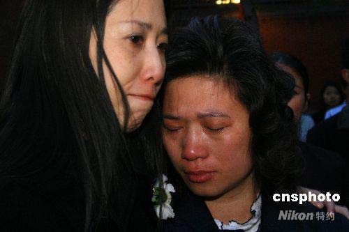 当地时间5月21日晚,英国华侨华人在伦敦华埠举行烛光追思会,哀悼在四川大地震中遇难的同胞。图为出生于台湾的庄雅兰(左)和华人律师李贞驹(右),在追思会上紧紧相拥,泪流满面。中新社发 李鹏 摄