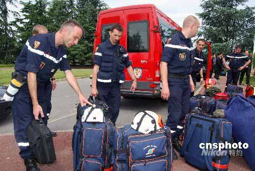 一支由十三名急救医生、护士和医疗辅助人员组成法国医疗队当地时间5月24日下午从巴黎启程,飞赴中国,帮助治疗汶川大地震中的伤员。图为医疗队成员在巴黎戴高乐机场整装待发。中新社发 吴卫中 摄
