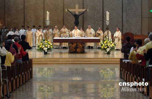洛杉矶“天使之后”大教堂五月二十四日(周六)举行大弥撒,为中国四川大地震遇难者祈祷。当地约五百名天主教信众参加了弥撒。“天使之后”大教堂是天主教洛杉矶总教区的主教堂,洛杉矶总教区是美国最大的天主教区。中新社发 张炜 摄