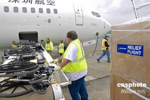美国西雅图当地时间五月二十四日,中国深圳航空公司从波音公司刚刚接收的一架全新七三七-八OO飞机,搭载着由国际医疗团队和美慈组织提供的医疗用品从西雅图起飞,将这些救灾物资免费运往中国。此举标志着由波音公司发起、中国航空公司合作参与的“希望航班”正式启航。中新社发 波音 摄