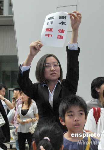 5月25日东京大学医学系留学生在六本木赈灾义演会场高举“感谢日本,坚强中国”标语。中新社发 关妍 摄