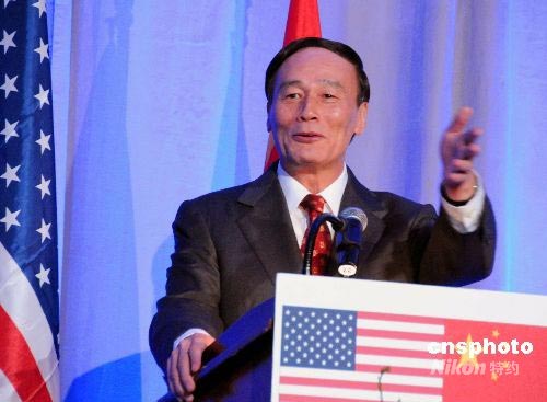 华盛顿当地时间六月十八日晚,中国国家主席胡锦涛的特别代表、国务院副总理王岐山,在与美国政商界的晚宴上发表四十分钟的即席脱稿演讲,他高瞻远瞩、睿智幽默、形象生动的演讲让与会者折服。中新社发 邱江波 摄