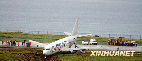 10月16日,在委内瑞拉首都加拉加斯以北30公里的迈克蒂亚国际机场,委内瑞拉一家航空公司的波音737客机在着陆时冲出跑道。机组人员和机上乘客无人遇难,目前事故原因正在调查中。新华社发(拉斐尔·莫雷诺)