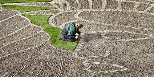 10月16日,在荷兰利瑟著名的郁金香花园--库肯霍夫公园,一名园丁用花球茎拼出自由女神像的图形。这个自由女神像的拼接共使用了36000个花球茎,以此来庆祝荷兰和纽约建立友好关系400年。
