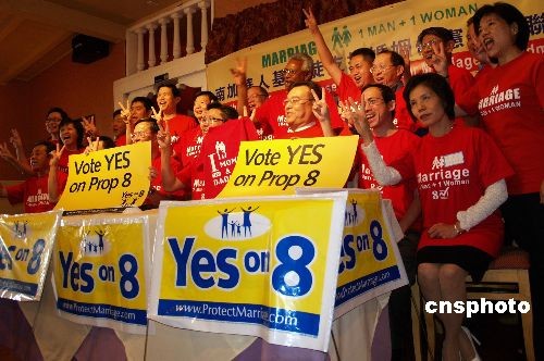 当地时间10月16日,美国南加州华人基督徒支持加州婚姻修宪提案,倡导一男一女婚姻制。中新社发 卢威 摄