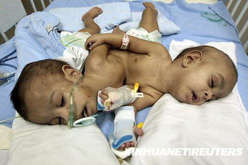 10月22日,在沙特阿拉伯首都利雅得的一家医院,伊拉克连体男婴齐亚德和伊亚德在熟睡中。新华社/路透