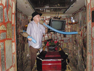 据和弗洛伊德结婚52年的妻子对记者称,自从她开始认识弗洛伊德以来,他就一直担心自己被活埋了。为了摆脱被“活埋”的恐惧,弗洛伊德竟然亲自为自己建造了一个“逃生墓穴”,这个用石头造成的“逃生墓穴”和普通去世者安葬的墓穴显然大不一样,因为它里面不仅有电视机、水罐、水果箱,甚至还有四个通风口,新鲜的空气可以通过墓穴顶部的通风管道流进墓穴中。更让人感到不可思议的是,在棺材旁边还装有两个自制的“求救扩音器”,这两个扩音器通过管道通向墓穴外面的塑料喇叭。