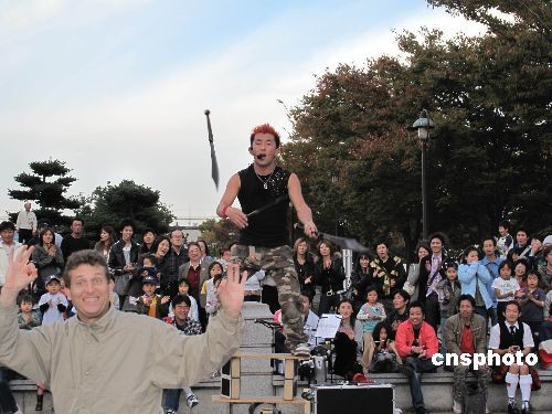 11月2日,众多的东京市民来到葛西临海公园,享受秋高气爽的假日。大道艺人的精彩表演,乐坏了前来秋游的各国人士。中新社发 段跃中 摄