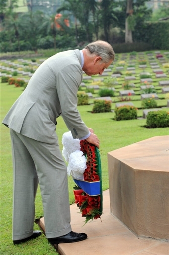 英国王储查尔斯访问印尼,并向二战中阵亡的反法西斯战士墓敬献花圈。