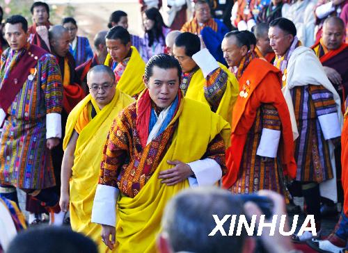 11月6日,不丹第五世国王吉格梅·凯萨尔·纳姆耶尔·旺楚克的加冕大礼在廷布举行。吉格梅·凯萨尔·纳姆耶尔·旺楚克国王现年28岁,曾在美国和英国学习,并获得牛津大学政治学硕士学位。在正式从父亲手中接过王冠之后,他成为了当今世界上最年轻的国王。新华社记者王晔摄