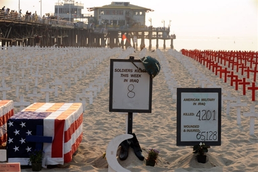 图:美国加州竖起十字架纪念伊战死难士兵
