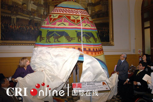 为庆祝即将召开的亚太经合组织第16次领导人非正式会议,秘鲁人特意制作了一顶世界上最大的印第安绒帽,并于19日在秘鲁国家博物馆展出。