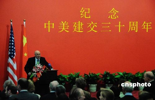 当地时间12月16日晚,中国驻美使馆举行活动纪念中美建交30周年,活动由驻美大使馆公使谢锋主持。中国全国政协副主席董建华、美国财政部长保尔森、劳工部长赵小兰、美国贸易代表施瓦布、常务副国务卿内格罗蓬特等中外名流近千人出席。中新社发 邱江波 摄