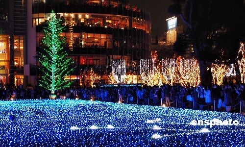 图:圣诞平安夜日本东京彩灯闪亮观客如织