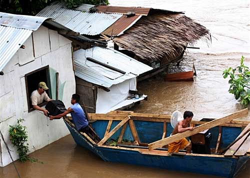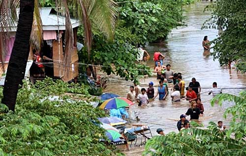 菲律宾南部暴雨引发洪水,约5千家庭受到影响,1月3日,大批居民撤离受灾地区,被转移到安全地带。