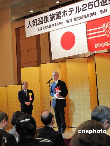 由日本观光经济新闻社主办的250家最受欢迎的温泉旅馆颁奖仪式,1月23日在东京举行。日本经济产业大臣二阶俊博等政界经济界代表,中国国家旅游局东京首席代表范巨灵等旅游界人士共200多人出席。据介绍,日本从北到南约有2600多座温泉,有7.5万家温泉旅馆。草津温泉以其优质的泉水,连续6年获得第一名。中新社发 段跃中 摄
