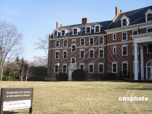 图为弗吉尼亚理工大学21日晚发生中国留学生血案的研究生生活中心大楼。弗吉尼亚警方表示,美国东部时间21日晚7时(北京时间22日早8时),在弗吉尼亚理工大学中的一家餐馆中,嫌犯朱海洋(Haiyang Zhu ,音译)残忍地用大菜刀将该校女同学杨欣(Xin Yang,音译)的头颅砍下。女研究生杨欣来自中国北京,现年22岁,1月8日刚刚抵达美国,在弗吉尼亚理工大学学习会计学。凶杀嫌疑人朱海洋,现年25岁,来自中国宁波,于2008年秋季入学,攻读农业和应用经济学博士学位。根据校方提供的紧急联络人档案,被害人和嫌疑人相互认识。中新社发 yudonghui 摄