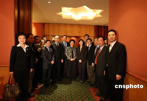 1月29日,率领“文化中国·四海同春”艺术团正在纽约访问的中国国务院侨办主任李海峰,参加了美国威特集团董事长李学海及当地华人华侨知名人士为她举行的午宴。中新社发 魏晞 摄