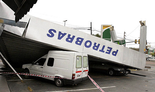 2月3日,阿根廷布宜诺斯艾利斯以北的罗萨里奥市,一所加油站的顶棚因暴雨倒塌。暴雨已经造成这一地区5人死亡,40人受伤。