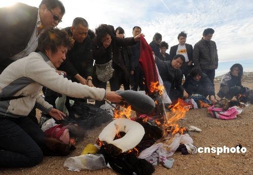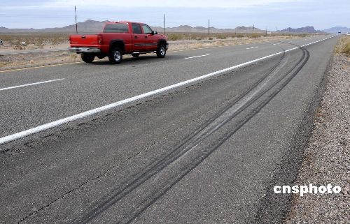 当地时间二月五日下午,中国旅游团车祸遇难者家属来到事故现场——美国亚利桑那州九十三号公路二十八英里处举行悼念活动,寄托对亲人的哀思。中新社发 张炜 摄