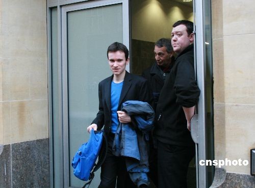 当地时间2月10日上午10时,干扰温家宝总理剑桥演讲的德国籍学生马丁·杨克,在剑桥地方法院出庭受审。马丁为自己做无罪辩护,法庭将于3月10日10时重新开庭审理。图为马丁·杨克在初审后离开法院。中新社发 李鹏 摄