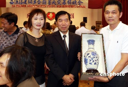 2009年2月15日,西澳中华会馆文化中心,三百多位来自13个华人社团的各界华人聚集一堂,举办“风火无情人间有情”募捐晚会,为澳大利亚维多利亚州遭受2月7日起发生的严重山火灾害的灾民募捐。中国驻澳大利亚珀斯总领馆李树钢总领事、西澳洲议长迈克沙德兰、珀斯市议员刘怡心、捷拉等官员到场支持。中新社发 高周丹 摄