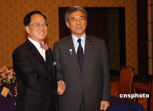 2月16日,香港特别行政区行政长官曾荫权开始对日本的正式访问。这是他就任特首以来首次访日,受到日本政经各界的欢迎。图为16日傍晚,曾荫权在东京与日本外相中曾根弘文举行会谈。中新社发 朱沿华 摄