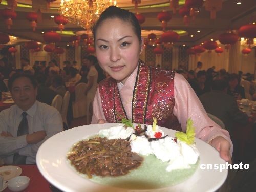 2月19日,“扬州红楼饮食文化节”在美国洛杉矶金都凯旋皇宫大酒店开幕,这是有华夏首席佳肴美誉的“红楼宴”首次登陆北美。 中新社发 卢威 摄