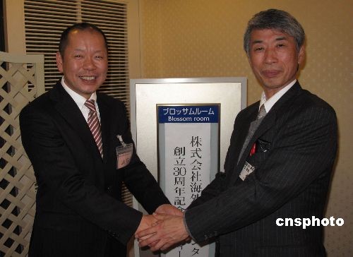 2月27日,日本海外放送中心在东京举行创立30周年纪念酒会。中心执行社长山口政宏介绍说,该中心15年前开始进行企业中文研修事业,至今已为日本数百家企业培养懂中文的人才7000多人。图为山口政宏社长(左)和中心顾问、日本丽泽大学中文系教授三瀦正道教授在酒会上。中新社发 段跃中 摄