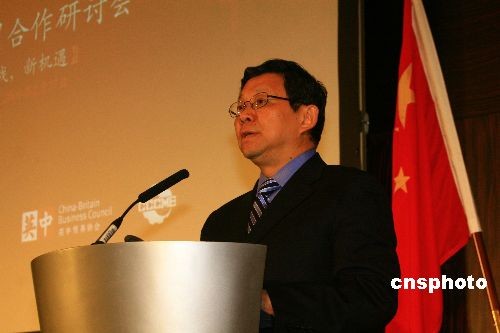 当地时间2月27日下午,中国机电进出口商会和英中贸易协会在伦敦共同举办中英经贸合作研讨会,中英两国企业界人士600多人与会。图为中国商务部长陈德铭在研讨会上致辞。中新社发 李鹏 摄