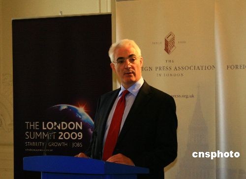 当地时间3月11日下午,英国财政大臣达林来到伦敦的外国记者协会,就将于本周末召开的二十国集团财长会“吹风”,回答记者提问。中新社发 李鹏 摄