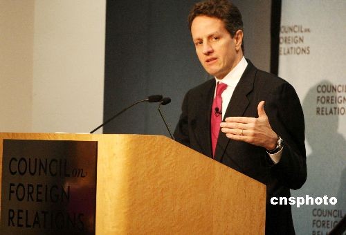 25日,美国财政部长盖特纳在位于纽约的美国外交关系协会(CFR)发表演讲时表示对美元很有信心,“美元的基础地位应该不会改变”。盖特纳同时表示,政府应该对金融公司有更大的控制权。图为盖特纳接受美国外交关系协会会员提问。中新社发 魏晞 摄