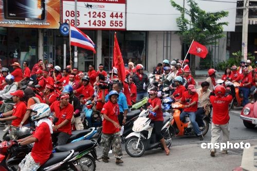 4月10日,泰国反独裁民主联盟(红衫军)部分示威者进入东亚领导人系列会议举办城市——帕塔亚,要求泰国总理阿披实辞职。红衫军领导人表示,斗争已经到了最后“摊牌”时刻,任何事情都有可能发生。中新社发 周兆军 摄