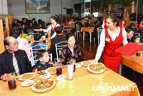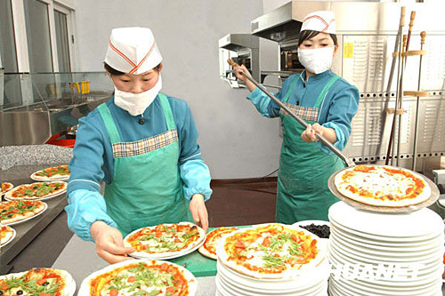 这朝鲜中央通讯社4月28日提供的照片显示,平壤(朝鲜)第一家意大利餐馆最近开张,受到顾客的欢迎。