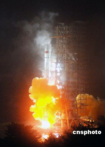 北京时间九月十三日凌晨0时02分,中国在西昌卫星发射中心用“长征三号甲”运载火箭将自行研制的“中星-22号A”通信卫星发射升空并成功送入预定轨道。图为火箭发射升空瞬间。中新社发 胡建兵 摄