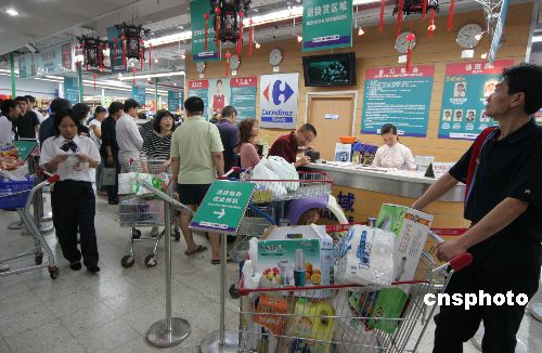十一黄金周期间,国内消费品市场供应充足,需求旺盛,生活必需品价格平稳。据商务部监测,10月1日至7日,全国实现社会消费品零售总额约3000亿元,比上年同期增长14.5%。中新社发 吴芒子 摄